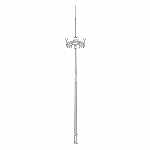 Высокомачтовые осветительные установки высотой 16 метров изготовленные на нашем заводе поставляются в комплектации с мобильной короной, анкерным элементом фундамента, эксплуатационным и монтажным комплектом.